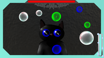 Merge bubbles of the right color & shoot them into the eyes of the cat to stop him from popping your bubbles.